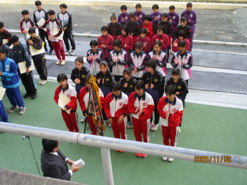 • 高校駅伝がエコパで行われ、女子が優勝し、全国大会へ進出することになりました。3年連続の快挙です。実力と経験の3年生2人と1、2年生3人の5人で挑み、プレッシャーに打ち勝って都大路を手にしました。男子も練習の成果をよい走りで出すことができました。応援ありがとうございました。全国大会に向けても、引き続きお願いします。