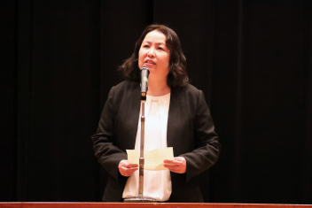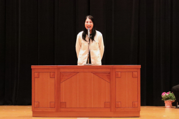 そのあと、本校卒業生の兼子心晴さんが来校しお話を伺うことができました。陸上競技部主将として浜松市立を全国高校駅伝に導き、大学で陸上競技を続けることを決め全日本大学女子駅伝で日本一を果たし、同時に看護の夢を追うために受験勉強に取り組み、浜松医科大学の看護科に合格した先輩です。後輩たちに「遠回りしても、どんな道でも間違いではない」「みんなで協力して頑張ることの大切さ」を伝えてくださいました。華奢なお姿の後ろに、熱い思いとパワーを感じました。私たちのためにお越しいただいて、ありがとうございました。