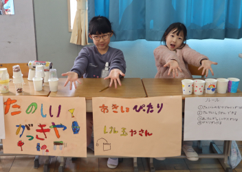グループの友達とルールを考えたり、お店作りをしたりしました。