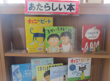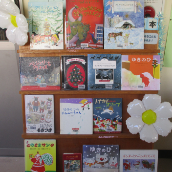 図書室前の廊下は、新しい本のコーナーがあったり冬におすすめの本などの掲示がされたりしています。