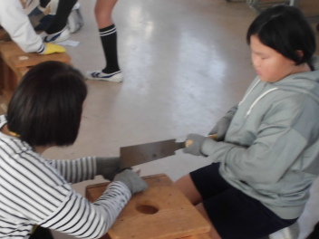• 今日で4年生3クラス最後の、のこぎりギコギコが終了しました。