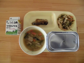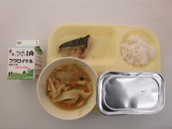 ご飯・牛乳・鯖の塩麴焼き・かぼちゃのほうとう・ゆず大根でした。