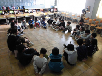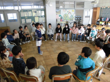 1年生は、ハンカチおとしやなんでもバスケット。2年生は、先生に関するクイズ大会をしていました。