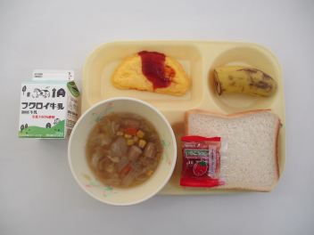 今日の給食は、「おすすめ朝ごはん」の献立でした。
