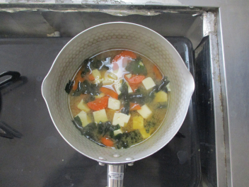 • 今日は、5年生の調理実習(味噌汁づくり)と、体育のシートバスケットボールの試合の様子を掲載します。どちらも、とても楽しそうに活動していました。