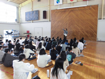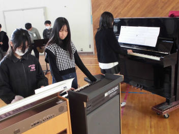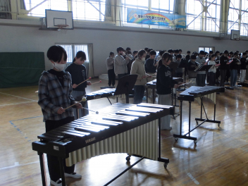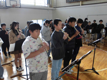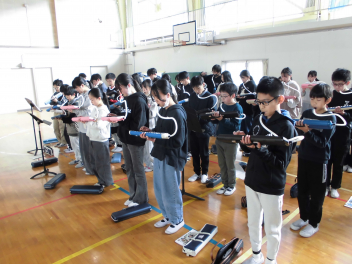 • 6時間目に、6年生が体育館で合奏練習をしていました。