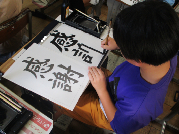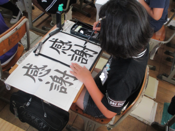 • 6年生の書写の授業と、4年生の体育の授業風景です。