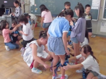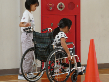 • 25日(木)に4年生がゆめいろ(総合的な学習の時間)の授業で、車椅子・視覚障害者・高齢者体験をしました。