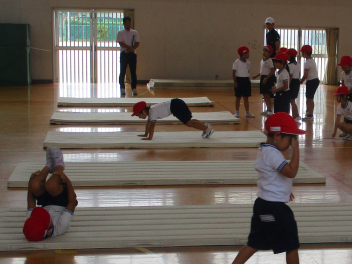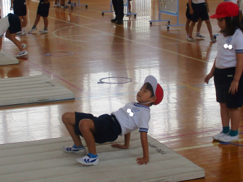 • 1年生の体育、「マットランドでどうぶつにへんしん!」の授業が行われました。