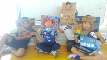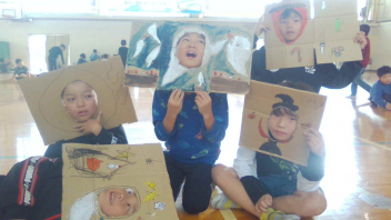 顔を出すところを工夫して、みんな楽しい作品をつくっていました。