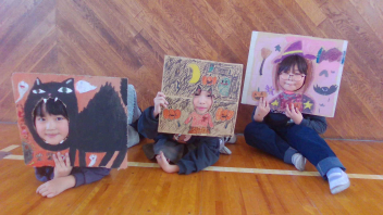 • 3年生が、図工の時間に、ハロウィンをイメージした作品づくりに取り組みました。
