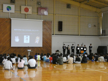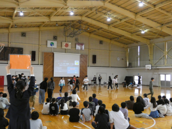 みんなでじゃんけん列車をしたり、中学校クイズを出してくれたりして、和やかな雰囲気で会が行われました。