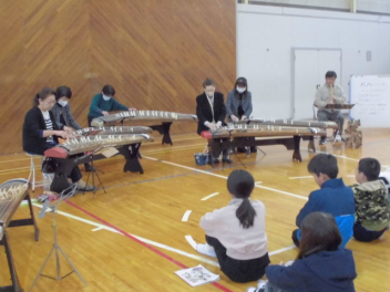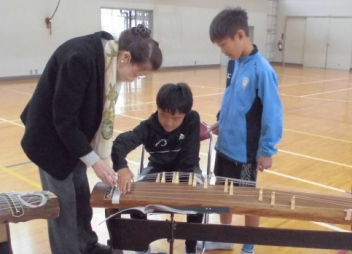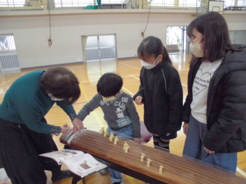 4年生が、音楽の時間に外部講師を招いてお琴体験をしました。
