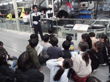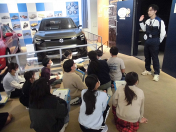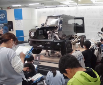 スズキ歴史館では、車づくりについての説明を聞き、学んだことを一生懸命ワークシートに書いていました。