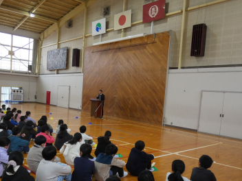 校長先生から、「1年の計は元旦にあり」「今年は干支は丙午。一人ひとりが輝き、未来に向かって馬のように大きくジャンプする3学期にしていこう。」という話がありました。