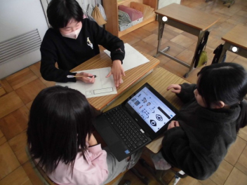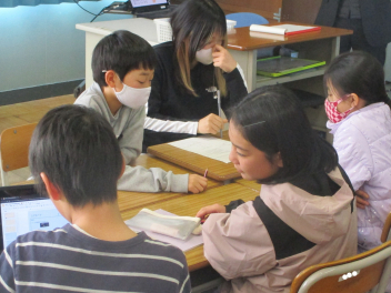 6年生が5年生に仕事内容を優しく丁寧に教えてあげていました。