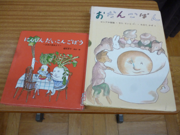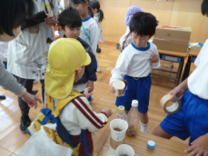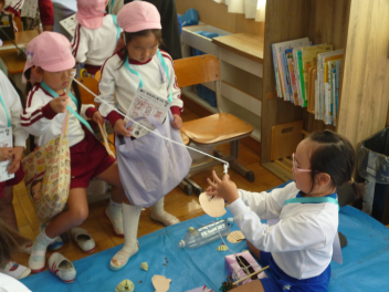 今日は、近くの幼稚園生や保育園生を小学校に招待して「なかよしまつり」を開きます。