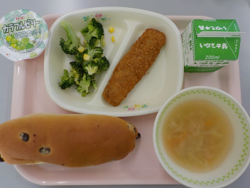 今日は、神奈川県の郷土料理「とんづけ」でした。神奈川県では古くから多くの豚を育てている地域があり、豚肉を味噌だれにつけて保存していたようです。またお寺で作られた精進料理の「けんちん汁」は、神奈川県にある建長寺が発祥の地として知られています。精進料理とは、肉や魚を使わずに作る料理のことです。今日の「けんちん汁」も伝統にならい、肉を使わずに豆腐や野菜のうま味を生かして調理されていました。