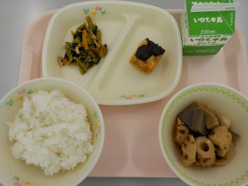 今日の給食は 「 ごはん 牛乳 いりどり あかしそあえ ★おしるこ 」でした 1 月 11 日 は鏡開きの日です。昔からこの日は、お正月にお供えした鏡餅を「おしるこ」や「ぜんざい」の中に入れて食べる習慣がありました。鏡餅はおめでたいものなので「切る」「割る」という言葉は使わず、「開く」という言葉を使います。そして、運が開けますようにと願いを込めます。お正月の思い出を思い浮かべながら、よくかんで食べることができました。 今日の浜松産の食材・・・牛乳