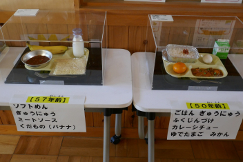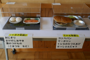 今日は「学校給食週間」三日目で、今日のテーマは「給食で麺が食べられるようになった頃を思い出す献立」です。学校給食で麺が出るようになったのは、戦後「子どもたちに食べやすい主食を増やしたい」と考えられたことがきっかけです。その中で「ソフト麺」が考えられ、今では給食ならではのメニューとして親しまれています。また、今日のコロッケには浜松産の豚肉と小松菜、玉ねぎが使用されていました。地元のいろいろな食材を味わうことができました。