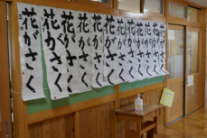 廊下には、冬休みの課題の書き初めが掲示してあります。