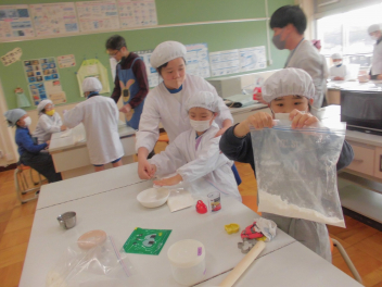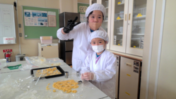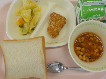 今日の給食は 「 しょくパン 牛乳 メイプルジャム ポテトとおこめのささみカツ ポークビーンズ フルーツサラダ 」でした 今日の「ポークビーンズ」に入っている大豆は、「畑の肉」といわれるほどたくさんの栄養素が含まれています。大豆は、おなかの中をきれいにする食物繊維や血をつくる鉄分を多く含むので、たくさん食べたい食品です。給食にもよく登場する食べ物のひとつです。 今日の浜松産の食材・・・牛乳、豚肉、玉ねぎ