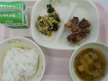 今日の浜松産の食材・・・牛乳、豚肉、小松菜