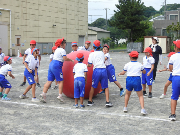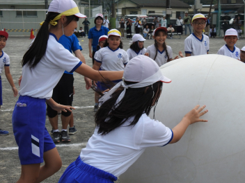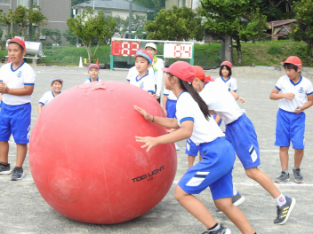 • 全校種目では、赤組白組対抗の大玉転がしがありました