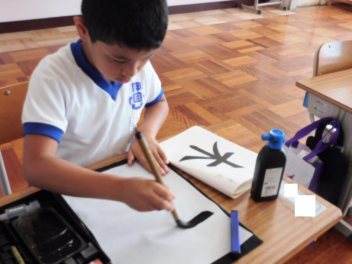 3年生です止め・はね・はらいに気を付けながら毛筆をやっています