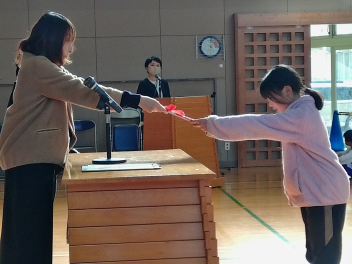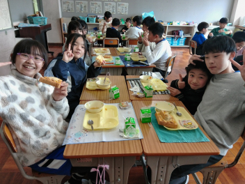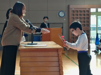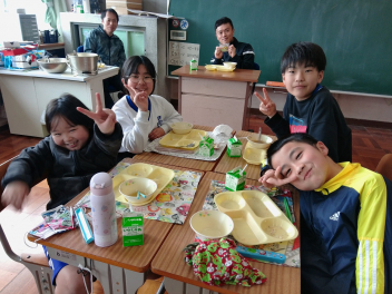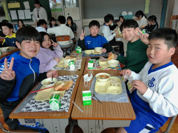 2月24日(火)には、以前伊目小学校の校長先生だった方が来校され、いつも頑張っている伊目っ子に向けて焼き芋を振舞ってくださいました