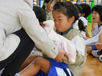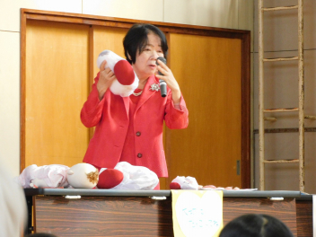 赤ちゃんがお母さんのお腹の中でどのように大きくなっていくのかも学び、赤ちゃんの大きさや重さを体感することができました