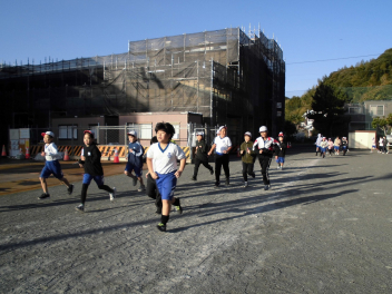 火曜日と金曜日の朝活動には、全学年が運動場に出て走ります!