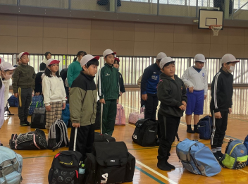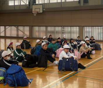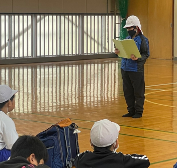 4・5年生の子供たちは体育館に集合して、出発式を行いました。