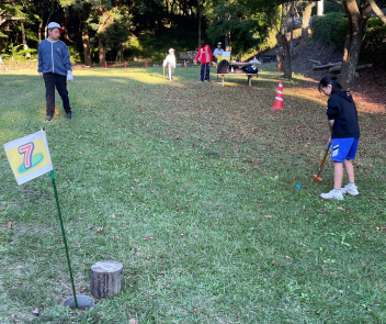 グループのみんなで協力しながら、ハイキングやマレットゴルフにチャレンジしました。