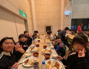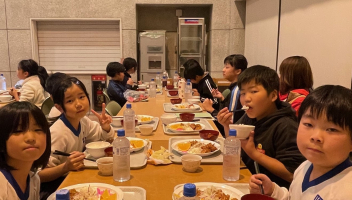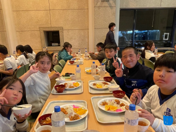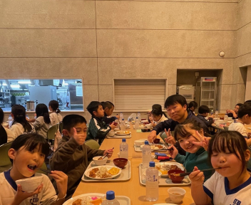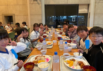 体調をくずずことなく、みんな元気で宿泊訓練を頑張っています。午後の活動を終えて夕べのつどいの後は、夕食の時間です。
