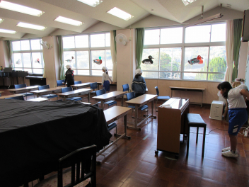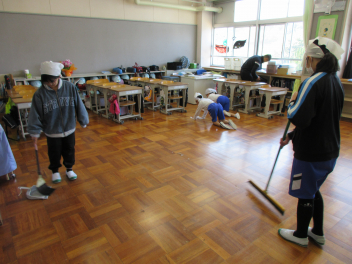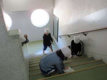 少し不安な様子の1年生もいますが、優しい伊目っ子が掃除場所や掃除の仕方も教えてくれるので大丈夫