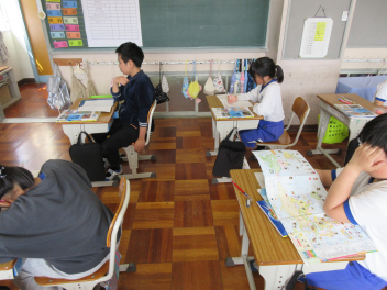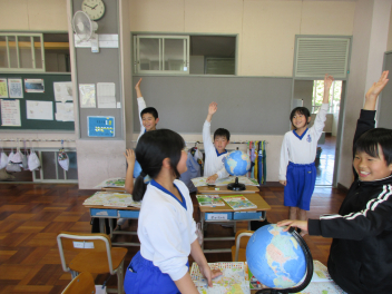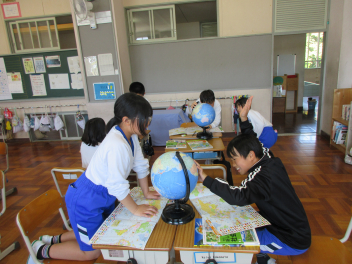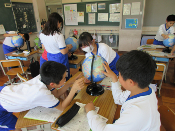•  5年生の社会科は「地図帳」や「地球儀」を使って学習を進めています。