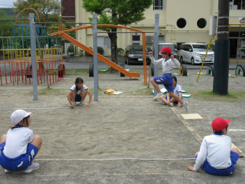•  5・6年生の体育は「走をり幅跳び」の学習をしています。