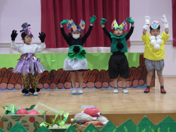 当日までは、いろいろ秘密なことが多い伊目幼稚園なので、詳細を載せられないことが残念ですが…お気に入りの衣装を身に付け表現をする姿はとてもかわいらしいです