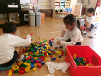 「ここもきれいになるといいよね」「こっちの遊具もきれいにしよう!」など、自分たちで気付き、丁寧に遊具を拭いてくれたこともあり、ピッカピカになりました。ありがとう
