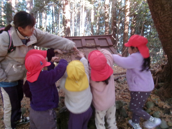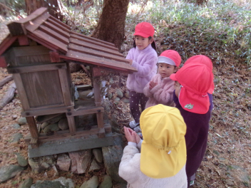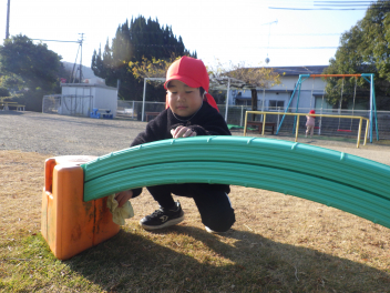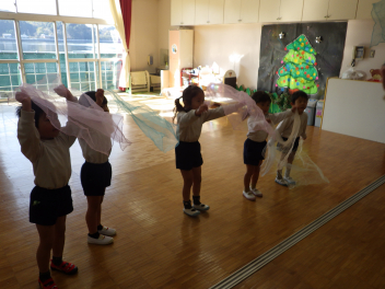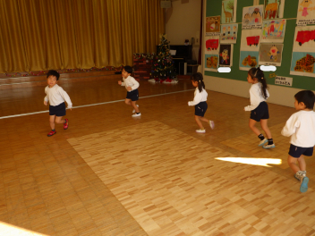 他にもクリスマスにちなんだ内容で、サンタになって表現することを楽しんだり、ソリに乗ったりと園でもクリスマス会やごっこ遊びを通して、イメージを楽しんでいたこともあり、自分なりの表現を楽しむ姿が見られました。