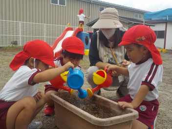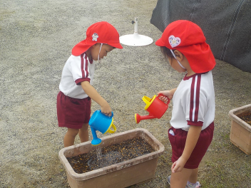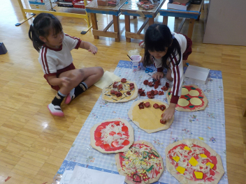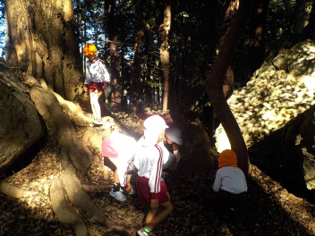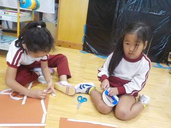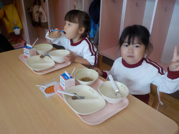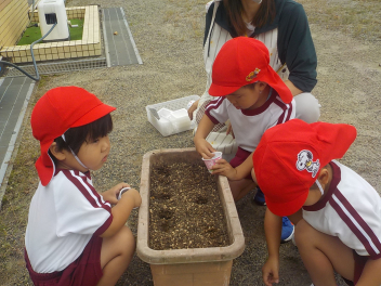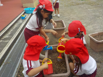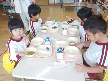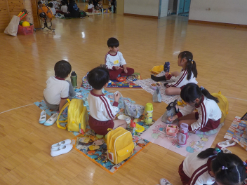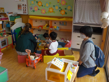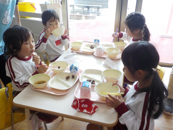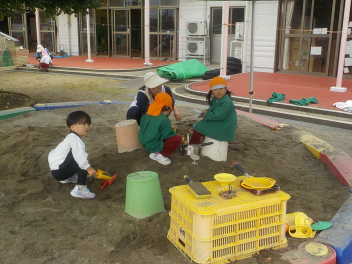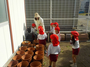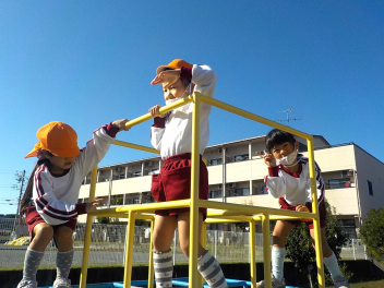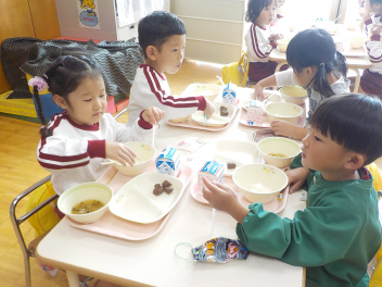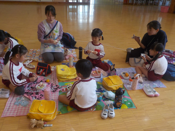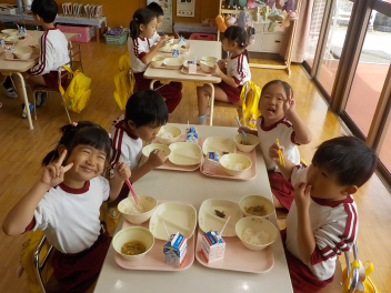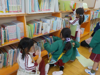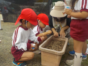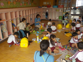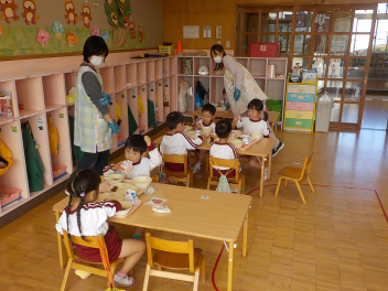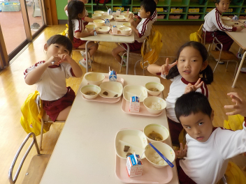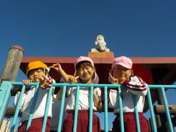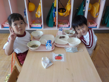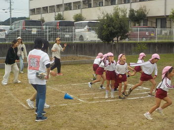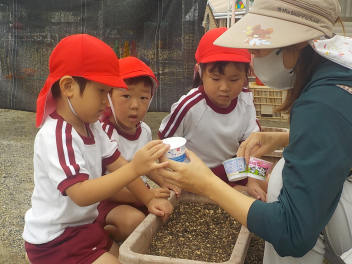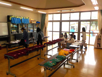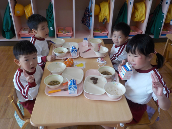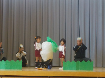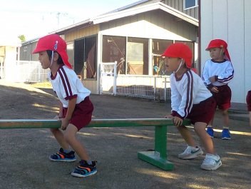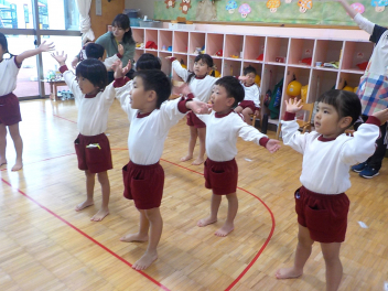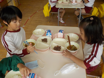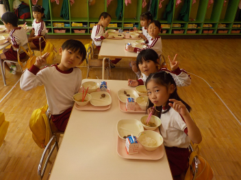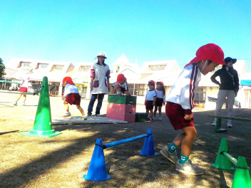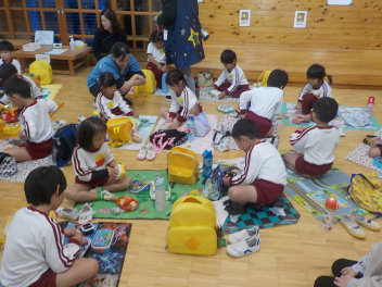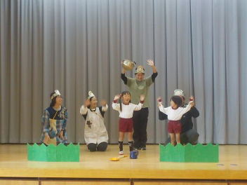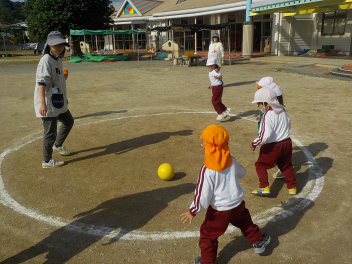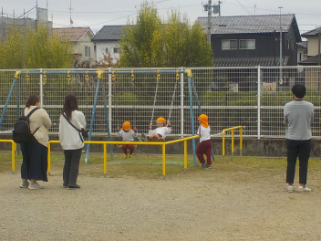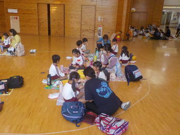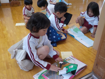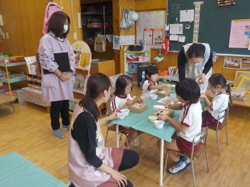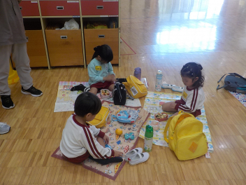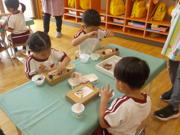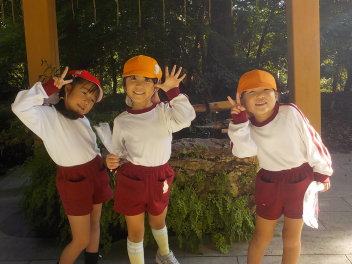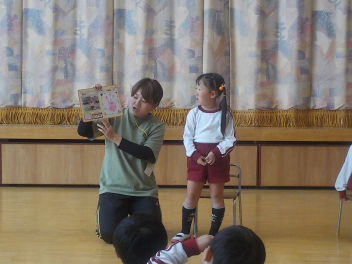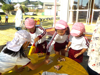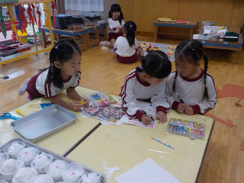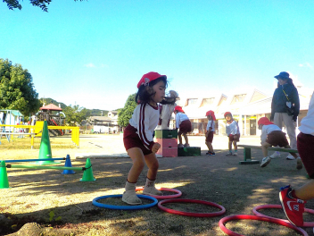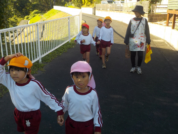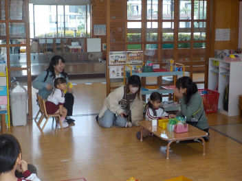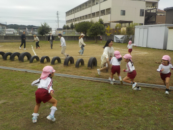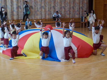 ちょっと堅い話ですが・・・。本園は、卒園児のほぼ全員が井伊谷小学校に進学することから、小学校生活に円滑に移行できるように、本園の年長児と井伊谷小1年生の2年間を「架け橋期」として、小学校と連携して教育計画を作っています。この計画を「架け橋プログラム」と言い、2年目を迎えました。本年度は、園から「生活科の授業に参加させてほしい」と依頼したところ、本日の生活科「なかよしまつり」に招待してくださいました。みんなで行ったところ、なんと本園だけでなく、引佐保育園・伊平幼幼稚園も一緒でした。小学校のやる気満々の姿勢に脱帽です