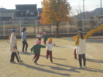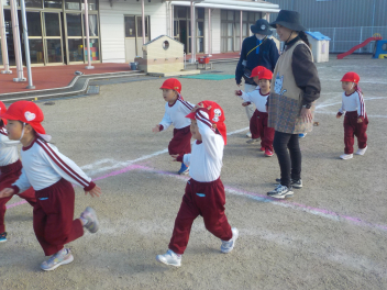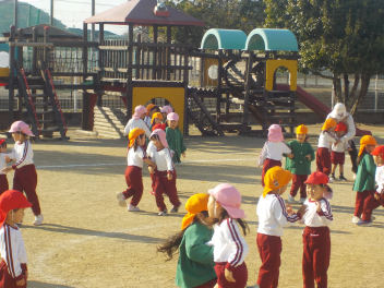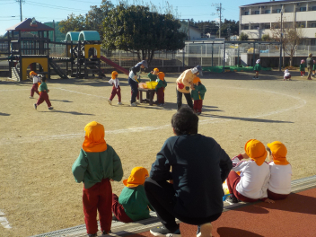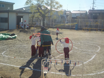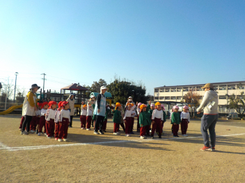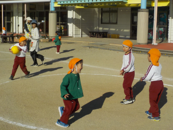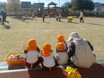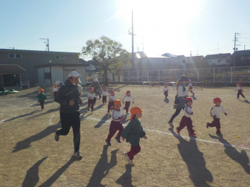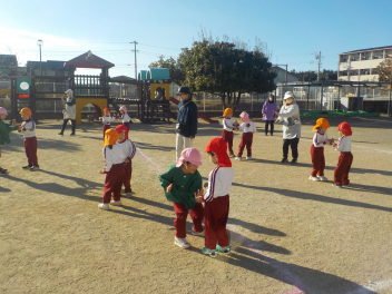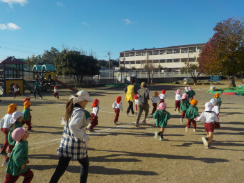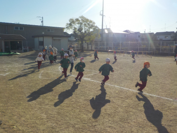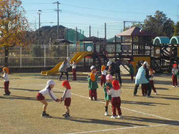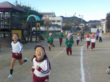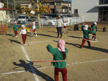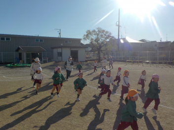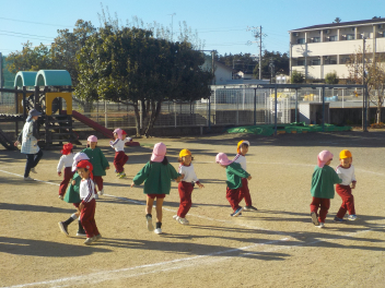 今日は冬晴れ。「なかよしタイム」も、しっぽ取りゲームも、フラフープ遊びも頑張りましたでも・・・寒かったdevil