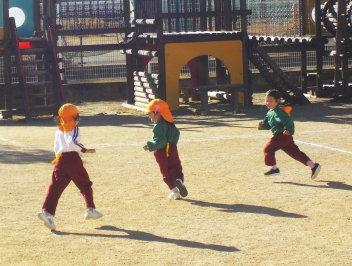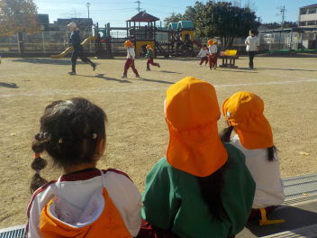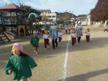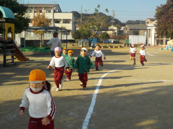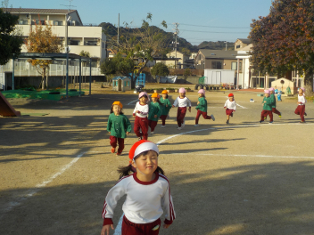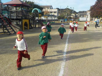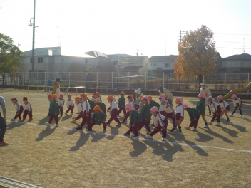 昨晩から吹き続けている北風で、プラタナスやフウの木は寒そうですmailでも子どもたちは、寒風の中を元気いっぱいに走り、笑顔いっぱいで踊りました。その後も、園庭で遊び続ける子どもたちと先生たち素晴らしい