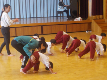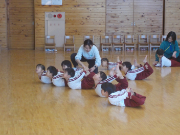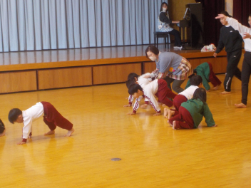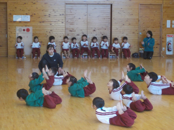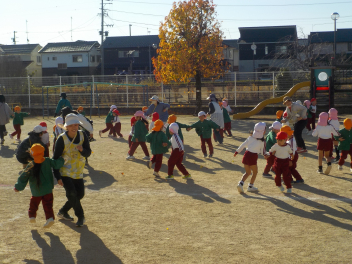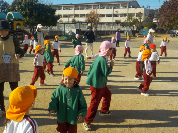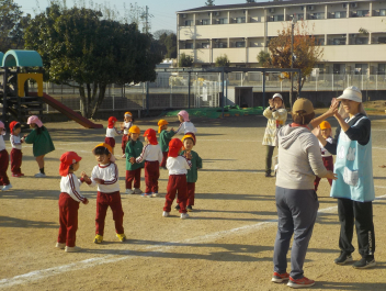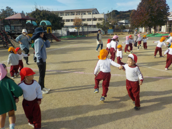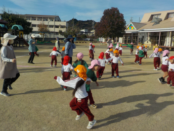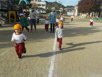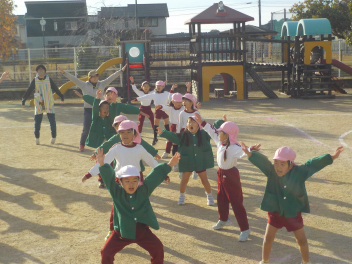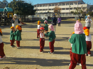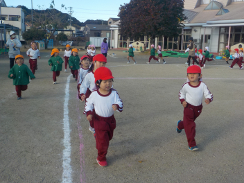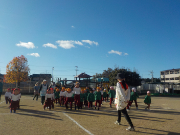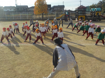 朝は車のガラスが凍るほど冷え込みましたが、お日さまが出ると「小春日和」でした。今日も、みんなで体操し、みんなで走り、みんなで踊りました