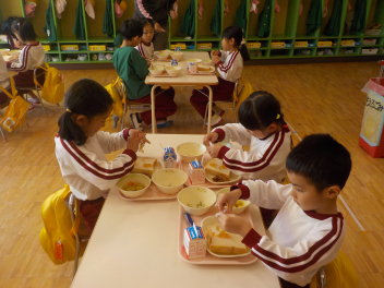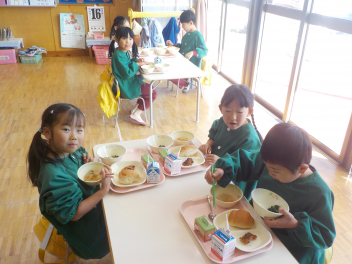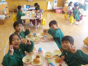今日の給食は、クリスマス献立ケーキもありましたみんなにニコニコでしたcheeky