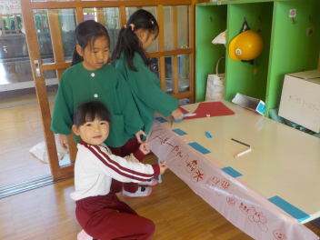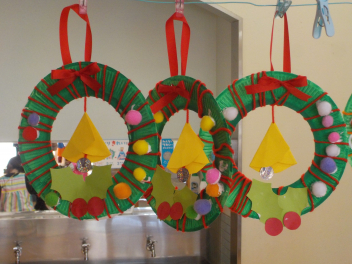遊戯室では、年少組さんと年中組さんが一緒になってリトミックをしていました。年長組さんは、クリスマスの絵を描いていました。「お楽しみ会」では、サンタさんがやってきます楽しみですcheeky「2学期の終業式」・4日間の「冬休み預かり保育」をしたら、今年が終わります。まさに「師走」寒さ対策を万全にして、元気に過ごしていきたいです今週もよろしくお願いします。