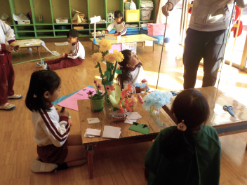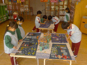 幼稚園の環境は、「学芸会」から「クリスマス」に変化しています。環境づくりは無用に見えますが、環境こそが、「自発的な活動としての遊び」にとって最重要事項なのです