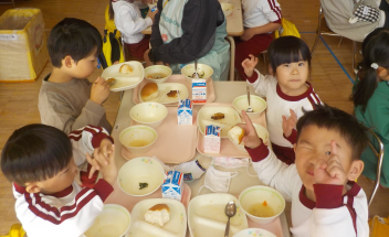 朝の新たルーティーンが「なかよしタイム」です。今日も、気持ちよく晴れた空のもとで、みんなで体操をして、みんなで走りました。体がホカホカしたねsad