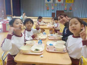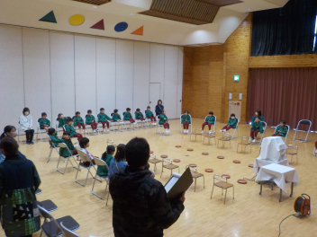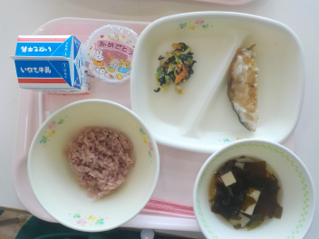 今日の給食は、卒園・卒業祝いメニューとして、「赤飯・ごま塩・牛乳・ 鮭の揚げびたし・ ごまあえ・ 若竹汁・卒業祝いゼリー」をいただきました。井伊谷小学校の栄養教諭の先生が発行する「給食だより」には、次のように書かれてました。「昔、赤飯は赤米を蒸した物だったと言われています。日本では、赤い色には邪気を祓う力があると考えられていたため、神様に赤米を供える風習がありました。しかし、赤米の生産が減ったため、白いお米に小豆で色付けしたものが今の赤飯の形になったそうです。」「大きく成長するにつれて、名前が変わる魚を出世魚といいます。出世魚は、武士が出世していくと名前が変わっていくことに由来があります。代表的なものには、『ブリ』や『スズキ』、『サワラ』などがあります。特に、『ブリ』は地域によって、さまざまな名前がついています。卒園・卒業お祝い給食では、『サケ』を使用しました。 『サケ』には、自分が生まれた川に、立派に成長して戻ってくること、名前にちなんで『災いをさける』という意味合いから、縁起がよい魚のひとつです。」